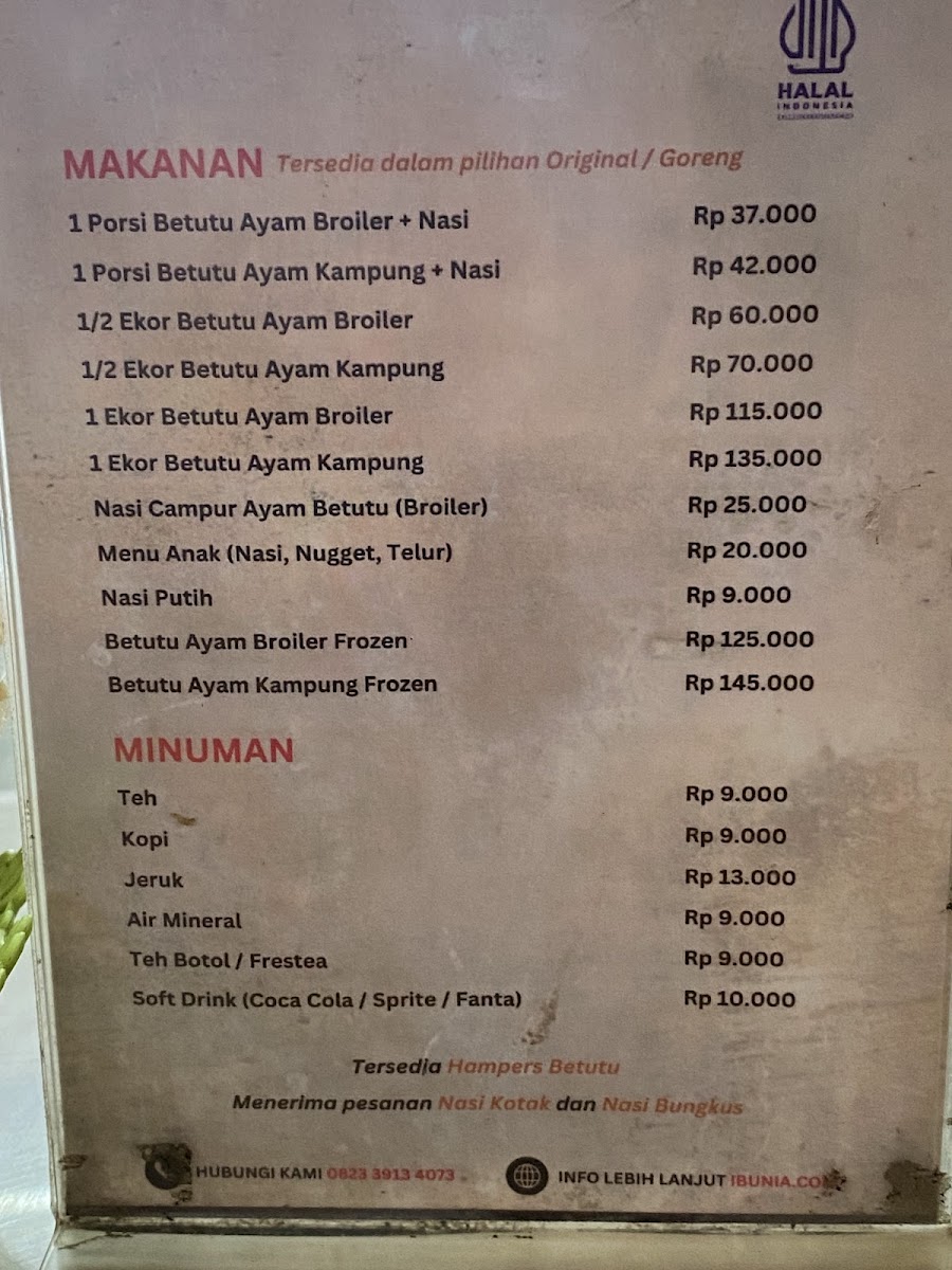 Ayam Betutu Ibu Nia Renon Denpasar is a must-visit culinary gem nestled in the heart of Bali, offering authentic Indonesian flavors centered around the iconic ayam betutu dish. This humble chicken restaurant specializes in slow-cooked ayam betutu, perfectly marrying bold Balinese spices with tender, moist meat that melts effortlessly. The menu highlights a variety of options such as the Ayam Betutu Original and Goreng, available in whole or portion sizes, alongside complementary dishes like Nasi Campur Ayam Betutu and Lontong Kuah.